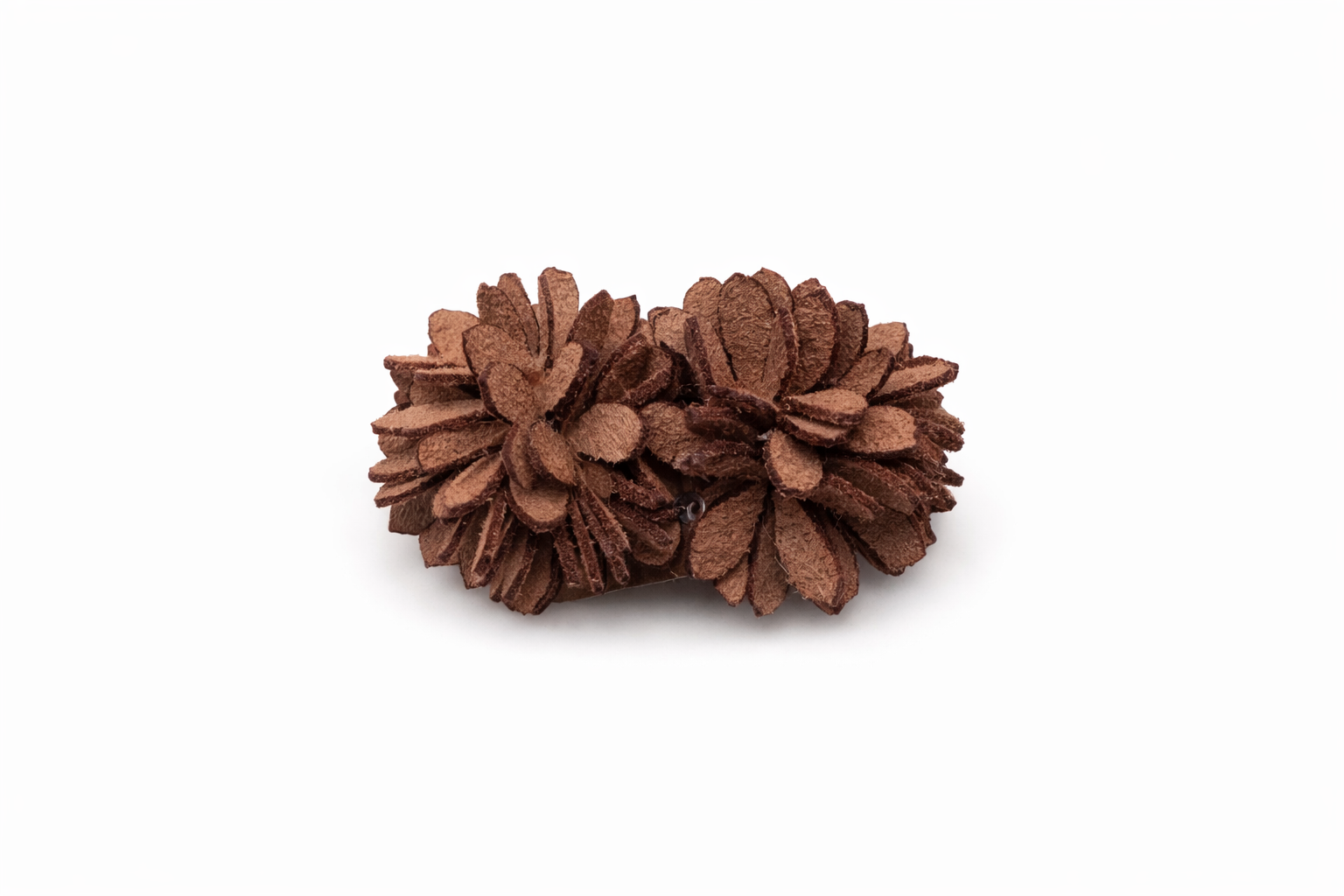 Deze bloemspeld in een warme mokka kleur is met de hand gemaakt en voelt zacht aan. De anti-slip clip zorgt voor een fijne grip, waardoor de speld prettig draagt en mooi blijft zitten, ook bij beweeglijke kinderen.