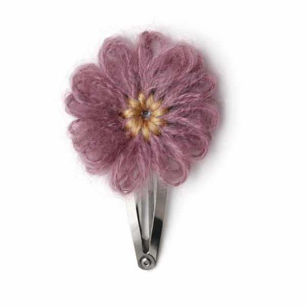 Deze handgemaakte bloemenclip in warme mauvetint geeft een zachte en stijlvolle uitstraling. De luchtige, fluffy bloem en stevige afwerking maken het een comfortabel accessoire voor dagelijks gebruik.