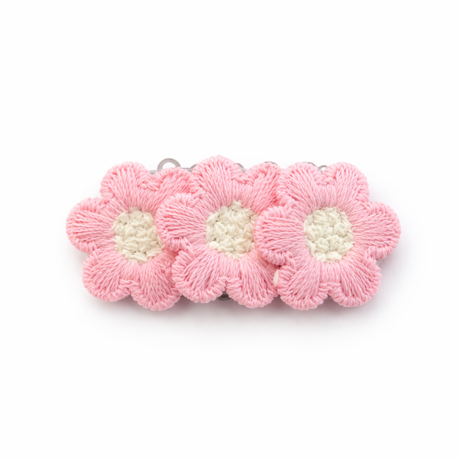 Deze bloemspeld in een zacht roze tint wordt met de hand gemaakt en voelt zacht aan. Ontworpen voor comfort en dagelijks gebruik, met een rustige uitstraling die mooi past bij neutrale outfits. Dankzij de anti-slip clip blijft de speld goed zitten, ook in fijn haar.